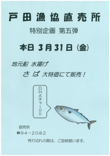 平成29年4月28日(金)は、地元船水揚げの真サバを大特価で販売いたしました! ご好評いただきました。ありがとうございました。